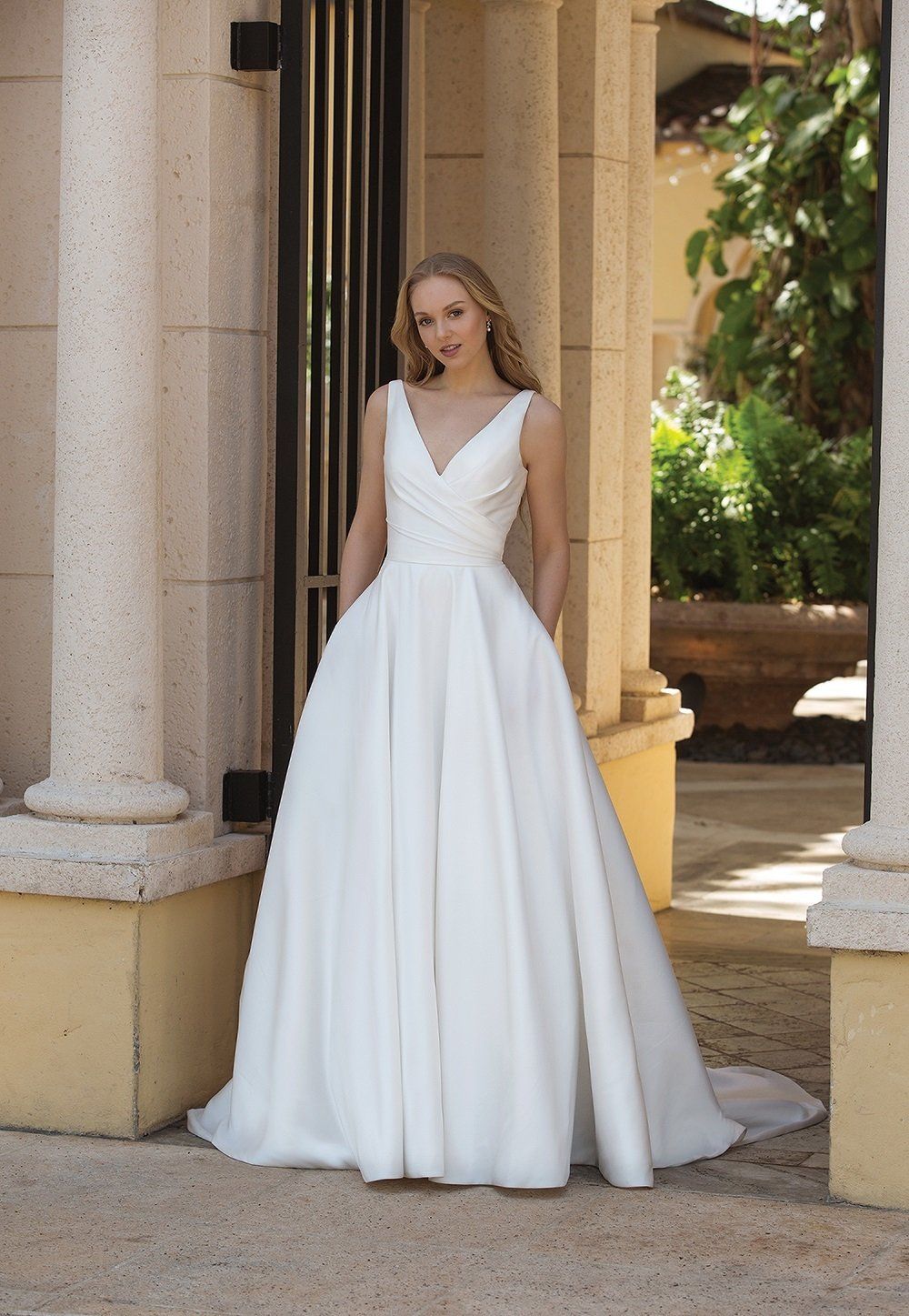Pair with a matching cathedral length veil, sold separately. This style is also avilable to order with the bodice lined to the side seams.